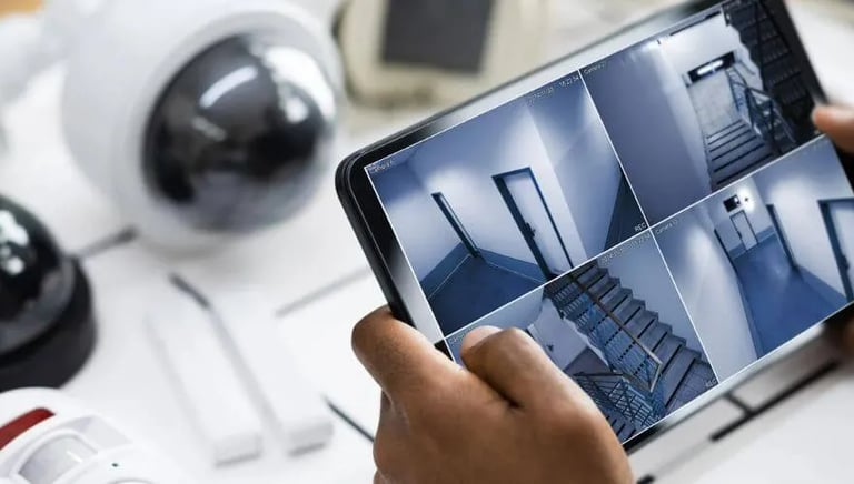 Instalação de câmeras de segurança com gravação em nuvem para acesso remoto e proteção contínua.